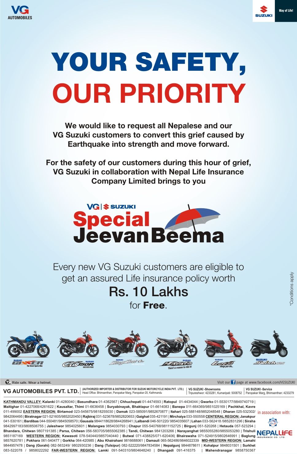 Every new VG Suzuki Customer is eligible to get an assured Life Insurance Policy worth Rs. 10 lakhs for free